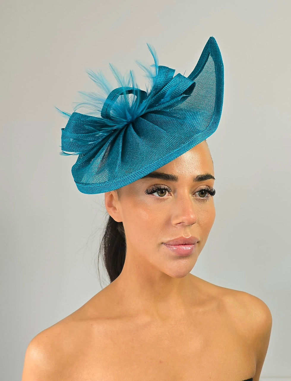 Teal Sinamay Teardrop Fascinator on a band 150525